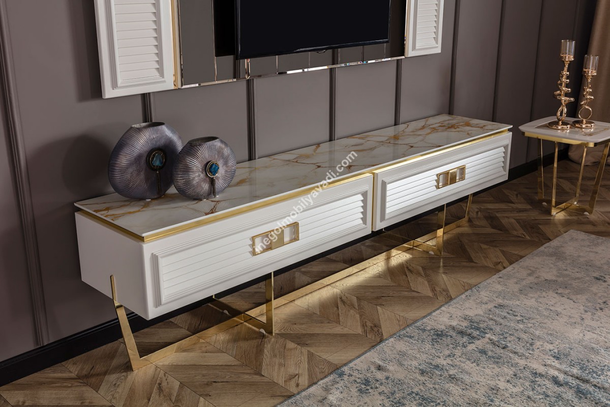 TEKNİK ÖZELLİKLER Özellik Açıklama Takım İçeriği 1 Takım TV Ünitesinden Oluşmaktadır. TV Ünitesi Kasa Suntalam, Ön Yüzler MDF Ve Boyalıdır. Üst Tablo MDF Üzeri Mermer Basklıdır. Ayaklar Fırınlanmış Metaldir. Bakım Mobilyalarınızı Nemli Bir Bez İle Silerek Temizliğini Yapabilirsiniz. Direk Güneş Işığından Koruyunuz. Sıcak Yüzeylerin Ve Suyun Uzun Süre Temasından Kaçınınız. Kesinlikle Çamaşır Suyu Kullanmayınız. Demonte Parçalar Tüm Parçalar Demonte Olarak Gönderilmektedir. MODÜL ÖLÇÜLERİ Modül Genişlik Yükseklik Derinlik Alt Blok 237 cm 61 cm 46 cm Üst Pano 203 cm 77 cm 5 cm TESLİMAT DETAYLARI Teslimat Yapılan İller TÜM TÜRKİYE Teslimat Süresi 15-20 iş günü Teslimat Tutarı Tüm Türkiye ÜCRETSİZDİR. Montaj Kurulum Ücretsiz Olarak İNEGÖL MOBİLYA VADİ Tarafından Yapılmaktadır. Teslimat Türü Randevulu Teslimat Yapılmaktadır. İSTEĞE BAĞLI ÖZELLİKLER * Ürünü Dilerseniz Parçalı Olarak Satın Alabilirsiniz.