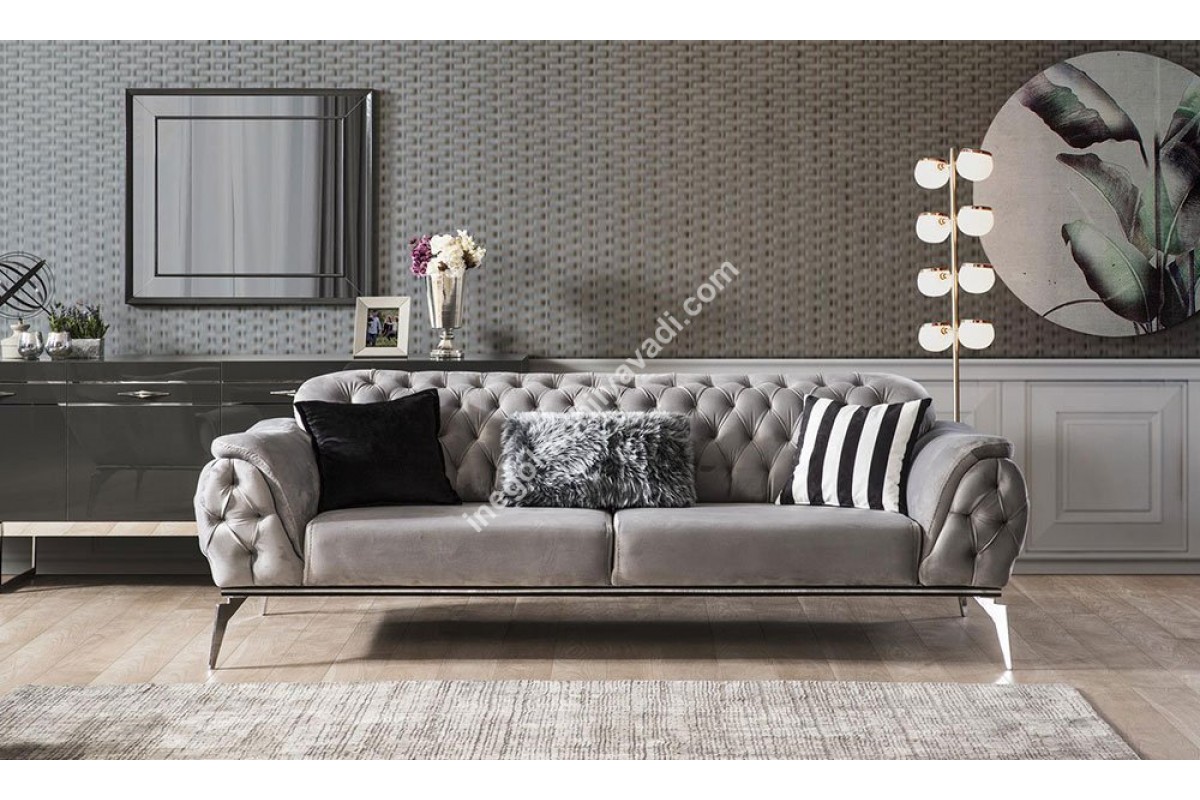 İskeleti Fırınlanmış Gürgen Ağacıdır. Üzerinde Kullanılan Kolay Temizlenebilen İthal Kadife Kumaştır. Müşteri Talebine Göre Renk Değişimi Mevcuttur. Uzaktan Satışlarımızda Müşterimiz Sipariş Verdikten Sonra Adresine Kumaş Kartelası Göndererek İstediği Kumaş Ve Rengi Tercih Edebilmektedir. Kullanılan Sünger 16 cmlik 32 HR soft Süngerdir.  Ayaklar Metaldir.